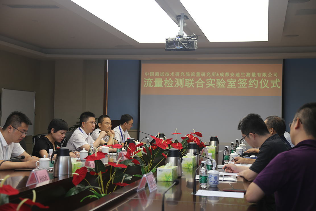 7月31日,中国测试技术研究院流量研究所(以下简称“中测院流量研究所”)与成都安迪生测量有限公司(以下简称“安迪生公司”)举行了“流量检测联合实验室”签约仪式暨“湿气流量环线标准装置”验收会议。中国测试技术研究院流量研究所所长、全国流量计量技术委员会委员赵普俊先生,主任熊茂涛先生,主任罗凡先生,天津大学教授、中国计量测试学会流量专业委员会副主任张涛先生,天津福路瑞特测控技术有限公司总经理孙立军先生,厚普股份总经理黄耀辉女士,安迪生公司总经理钟骁先生等共同出席了此次签约仪式。